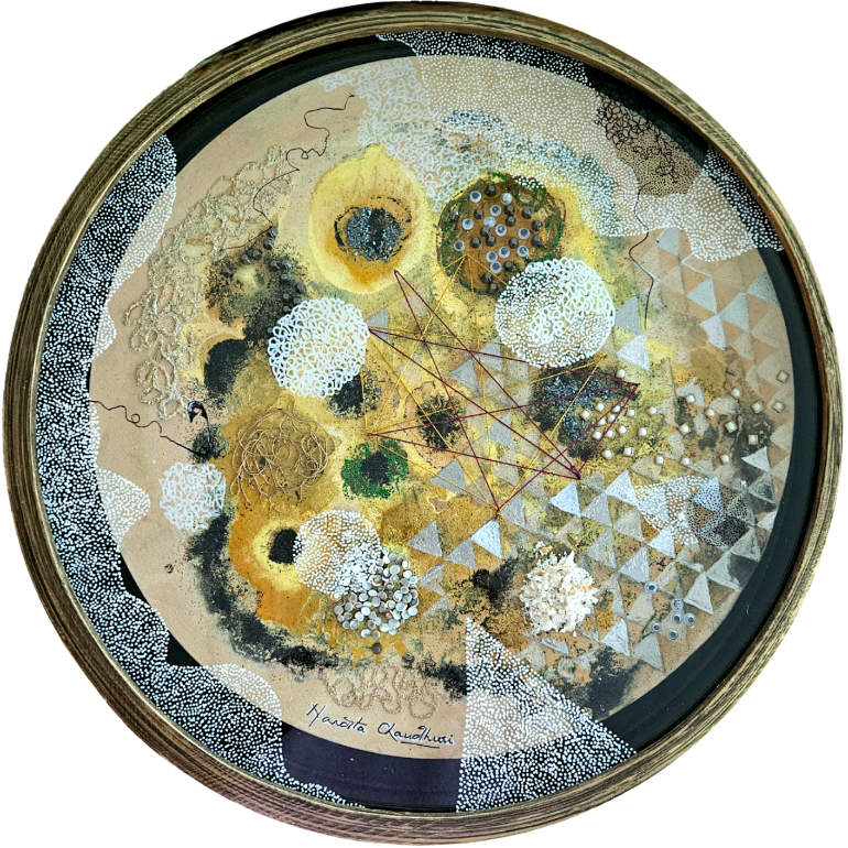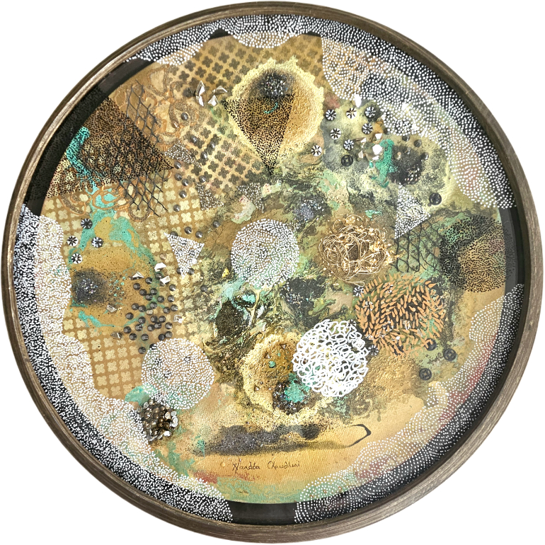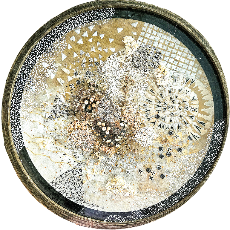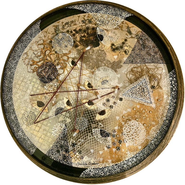 Tapestry Manifestation 142 x 34.5 inchespainting & embroidery on linen Manifestation 236 x 36 inchesMixed Media on Canvas Displacement 122.5 x 22.5 inchesPaint & Embroidery on Canvas Displacement 222.5 x 22.5 inchesPaint & Embroidery on Canvas Displacement 322.5 x 22.5 inchesPaint & Embroidery on Canvas Displacement 422.5 x 22.5 inchesPaint & Embroidery on Canvas Displacement 522.5 x 22.5 inchesPaint & Embroidery on Canvas
